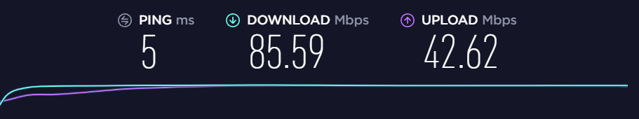 펌웨어 다운그레이드 후 speedtest.net에서 5번의 속도측정 결과 아래와 같습니다.