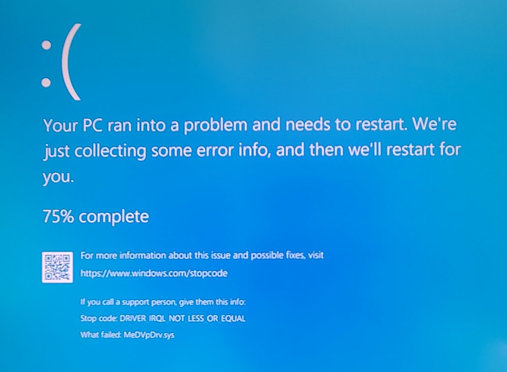 그래서 급하게 블루스크린 사진을 찍어 놓고 MeDVpDrv.sys 를 검색해 보니